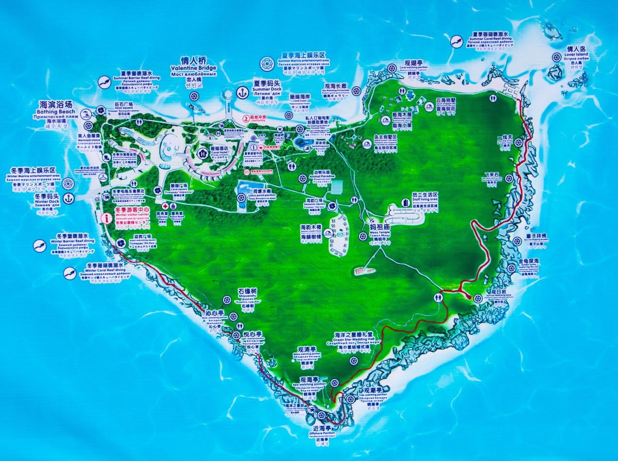 距三亞市30公里,鳳凰機(jī)場(chǎng)38公里,緊靠?谥寥齺喌母咚俟,位置優(yōu)越,交通便利。蜈支洲島是海南島周圍為數(shù)不多的有淡水資源和豐富植被的小島,有二千多種植物,種類繁多。