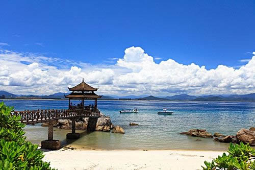亞龍灣是海南省三亞市東郊的一處優(yōu)質(zhì)熱帶海濱風(fēng)景區(qū),沙灘平緩開(kāi)闊,沙粒潔白細(xì)軟,海水清澈澄瑩,海底資源豐富,生長(zhǎng)眾多原始熱帶植被,頗具熱帶海島風(fēng)情。海灣距離市中心區(qū)約10公里,以野豬島為中心,南有東洲島、西洲島,西面有東排、西排,可開(kāi)展多種水上運(yùn)動(dòng)。