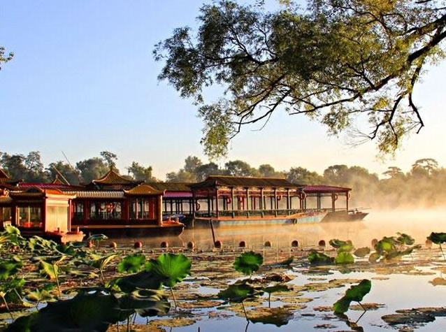 清康熙二十年(1681年),清政府為加強對蒙古地方的管理,鞏固北部邊防,在距北京350多公里的蒙古草原建立了木蘭圍場。每年秋季,皇帝帶領(lǐng)王公大臣、八旗軍隊、乃至后宮妃嬪、皇族子孫等數(shù)萬人前往木蘭圍場行圍狩獵,以達(dá)到訓(xùn)練軍隊、固邊守防之目的。為了解決皇帝沿途的吃、住,在北京至木蘭圍場之間,相繼修建21座行宮,熱河行宮——避暑山莊就是其中之一。避暑山莊及周圍寺廟自康熙四十二年(1703年)動工興建,至乾隆五十七年(公元1792年)最后一項工程竣工,經(jīng)歷了康熙、雍正、乾隆三代帝王,歷時89年。在英法聯(lián)軍攻打北京時,咸豐皇帝就帶著一批大臣逃到了這里。