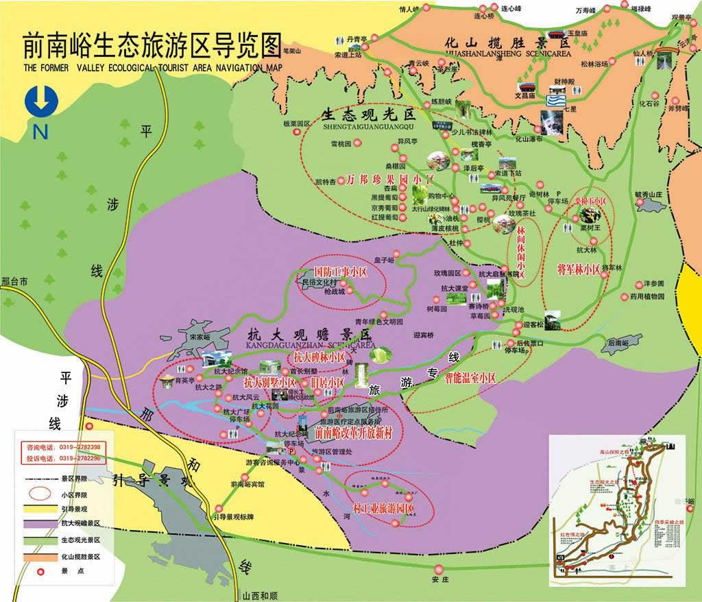前南峪國家森林公園里有全國愛國主義教育示范基地——抗大陳列館、紀(jì)念碑和大型浮雕像;筆架山、練膽峽、斧劈峰、七星閣、文昌閣、澤后亭等景點;萬邦珍果內(nèi)已有美國紅提葡萄、澳洲秋紅油桃和烏克蘭櫻桃等品種;萬株唐代板栗樹和西洋參、杜仲、丹參、金銀花等數(shù)十種保健藥用植物;還有14億年前的植物化石、古長城、志高厴、溫泉寺等古跡。