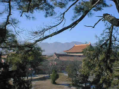 入關(guān)第一帝世祖順治皇帝的孝陵位于南起金星山,北達昌瑞山主峰的中軸線上,其余皇帝陵寢則以孝陵為中軸線按照“居中為尊”、“長幼有序”、“尊卑有別”的傳統(tǒng)觀念依山勢在孝陵的兩側(cè)呈扇形東西排列開來。各陵按規(guī)制營建了一系列建筑,總體布局為"前朝后寢"!鞍俪邽樾危С邽閯荨钡膶徝浪枷胴灤┯诿恳蛔陮嫿ㄖ。