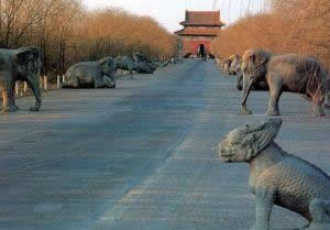 昌陵內(nèi)葬仁宗嘉慶皇帝和孝淑;屎,位于泰陵西側(cè),于嘉慶八年(1803年)建成,建筑形式與泰陵大同小異,規(guī)模并列。乾隆傳位給嘉慶帝時并為他在泰陵南西南一公里的地方,選好陵址。從前面的神道到最后的寶城,一應(yīng)俱全,但昌陵的寶城比泰陵還高大。昌陵的隆恩殿很有特色,地面鋪的是很貴重的黃色花斑石,黃色的方石板上有天然雅致的紫色花紋,素有“滿堂寶石”之稱。嘉慶皇帝的皇后陵昌西陵的回音石、回音壁,回音效果絕妙,可與北京天壇的回音壁相媲美。昌陵西邊是昌西陵和昌妃園寢,分別葬著孝和;屎蠛湾鷭宓热恕