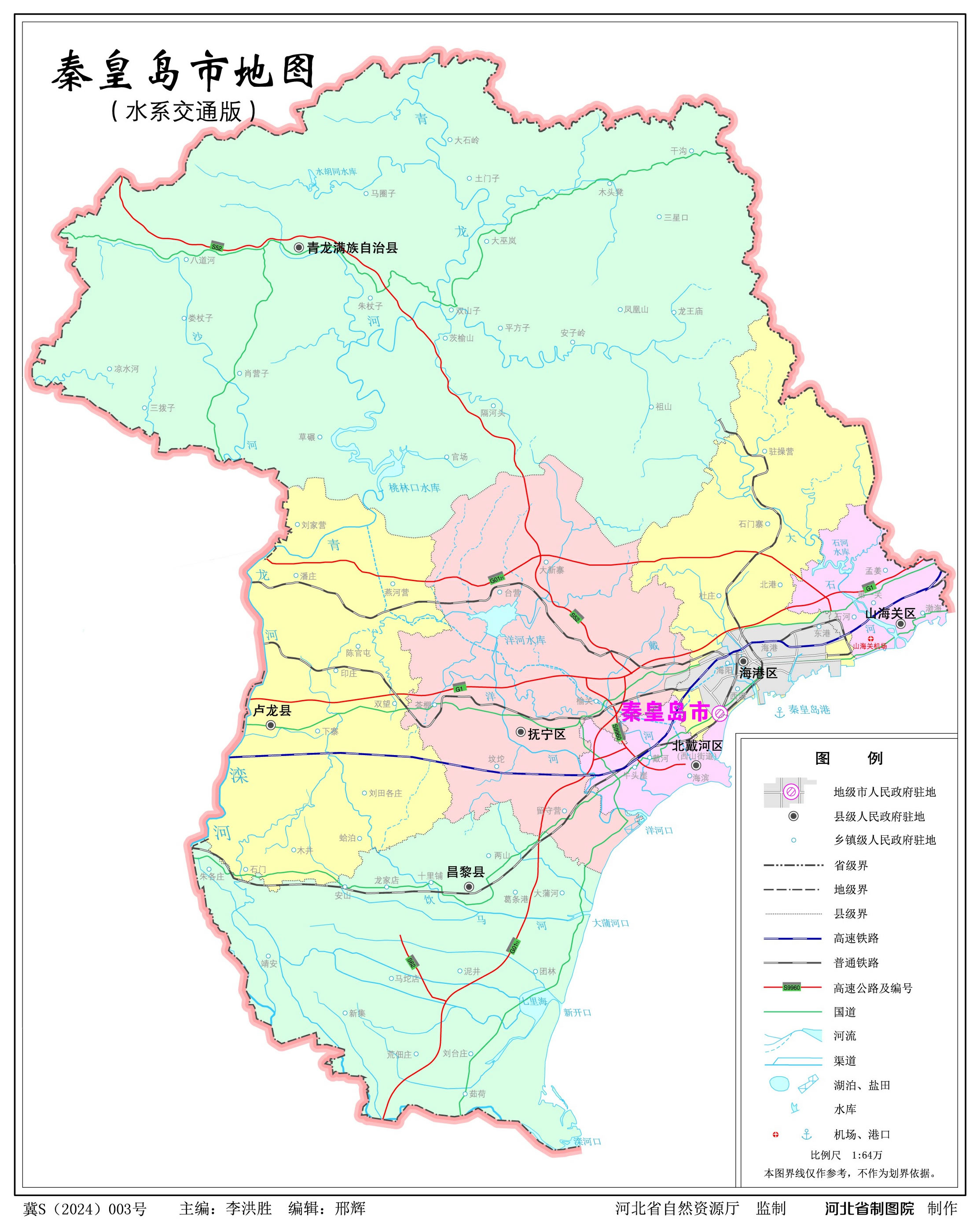 秦皇島市轄4個(gè)市轄區(qū)、2個(gè)縣、1個(gè)自治縣: