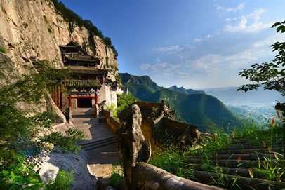 繞山登上十八盤,便到達最高處的媧皇閣。媧皇宮的建筑布局,充分利用了原有地形,依山就勢,匠心獨運。