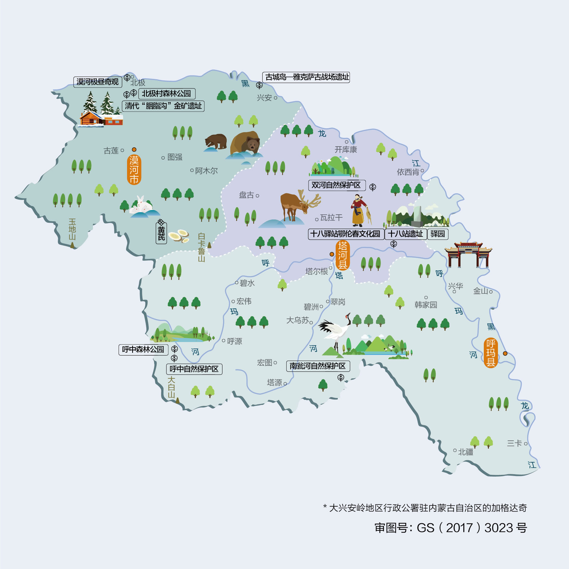 大興安嶺地區(qū)轄4個區(qū)、1個縣級市、2個縣: