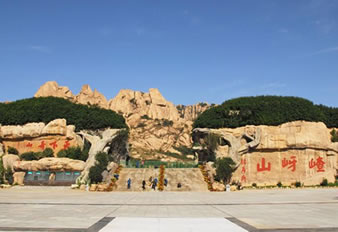 南山門,前后是嵖岈山主山門廣場,分為前廣場和后廣場,占地面積10萬平方米,主要設(shè)主山門通道、主山門綜合服務(wù)區(qū)、停車區(qū)、國家地質(zhì)公園主碑區(qū)、水車群組區(qū)和觀光水系區(qū)。
