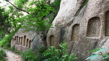 北山,位于嵖岈山北端,主要景點有蓬萊三洞、摩崖石刻、白云洞、天王頂?shù)取?/p>