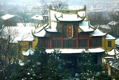 北院的主體建筑是藏經(jīng)樓。藏經(jīng)閣1920年至1922年興建,是一座兩層五開(kāi)問(wèn)的樓閣式建筑,高約25米,頂為獸頭大脊,魚(yú)角搬爪,斗拱飛檐,古樸玲瓏,當(dāng)面為四柱通天,雙鳳朝陽(yáng),五龍戲珠。整個(gè)建筑、門(mén)扇窗牖,涂朱繪彩,刻畫(huà)鏤雕,精巧壯觀,金碧輝煌,是武漢市唯一一座磚木結(jié)構(gòu)的古建筑物。這里珍藏著許多佛教文物,除《藏經(jīng)》外,還有佛象、法物、石雕、木刻、書(shū)畫(huà)碑帖及外文典籍等。