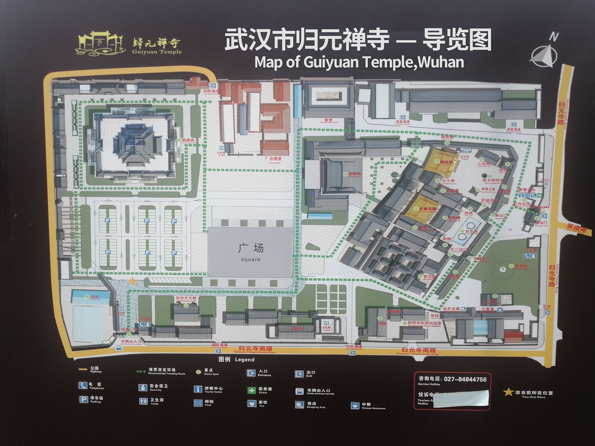歸元禪寺由北院、中院和南院三個(gè)各具特色的庭院組成,分別擁有藏經(jīng) 閣、大雄寶殿和羅漢堂等三組主體建筑群。