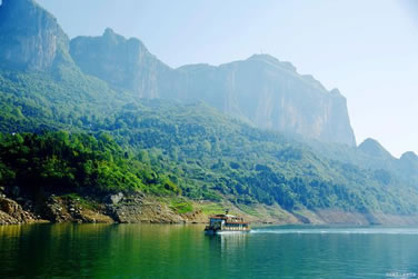 清江支流丹水,因其水淺,清澄得可見河床鋪滿的亂石,兩岸山巒起伏,郁郁蔥蔥,現(xiàn)成為游人漂流的絕佳去處。丹水最寬處有十幾米,最窄處僅四五米,大雨過后,河水水量較大,水流湍急,是漂流的好時候,但較危險。2-3人乘坐一充氣皮筏從上游順流而下,在水面闊、水流緩處,可一邊蕩漿一邊仰望兩岸幽靜的景色,或低頭搜尋水底的小魚小蟹;而水面窄處,水流因亂石的阻礙變得浪花飛濺,駕著皮筏,一不小心,就會撞上大石頭,有時皮筏因水流太急而不可控制,那種緊張刺激的感受,是長期生活在城市中的人們很難體會到的。與小三峽、神農(nóng)溪漂流顯著不同的是,小三峽乘機(jī)動船,機(jī)器的噪聲,很難讓人靜心去欣賞其山其水的瑰麗,神農(nóng)溪是由纖夫拉纖,將“豌豆角”型木船拉至上游,然后由船工撐船漂流而下,游人只能仰望山的幽奇,水的清亮,卻不能親自感受駕舟乘風(fēng)破浪的驚險刺激。