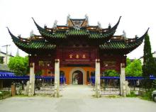 萬壽宮座落在風(fēng)景秀麗的東門外沙灣,北靠東嶺,面瞰沱江。萬壽宮始建于明末清初,規(guī)模建筑于清乾隆二十年(1755年)。清咸豐四年(1854年)江西人楊泗在西側(cè)建遐昌閣;民國十七年(1928年)又在大門北側(cè)建陽樓。至此,萬壽宮形成建筑規(guī)模宏大,設(shè)計(jì)精巧獨(dú)特,雕琢玲瓏剔透的建筑群落。鳳凰人在萬壽宮對(duì)面山腰修建了一座寺廟—準(zhǔn)提庵,又叫江心禪寺。此庵在前面土紅色墻上開了兩個(gè)丈余直徑的圓型大窗,對(duì)著萬壽宮,江西人在沙灣修了一座小白塔,尖頂在陽光下十分耀眼,刺向準(zhǔn)提庵墻。鳳凰人在準(zhǔn)提庵后殿塑了一尊“骷髏子菩薩”。此菩薩形似濟(jì)公和尚,手張著一個(gè)大大的“乾坤袋”。