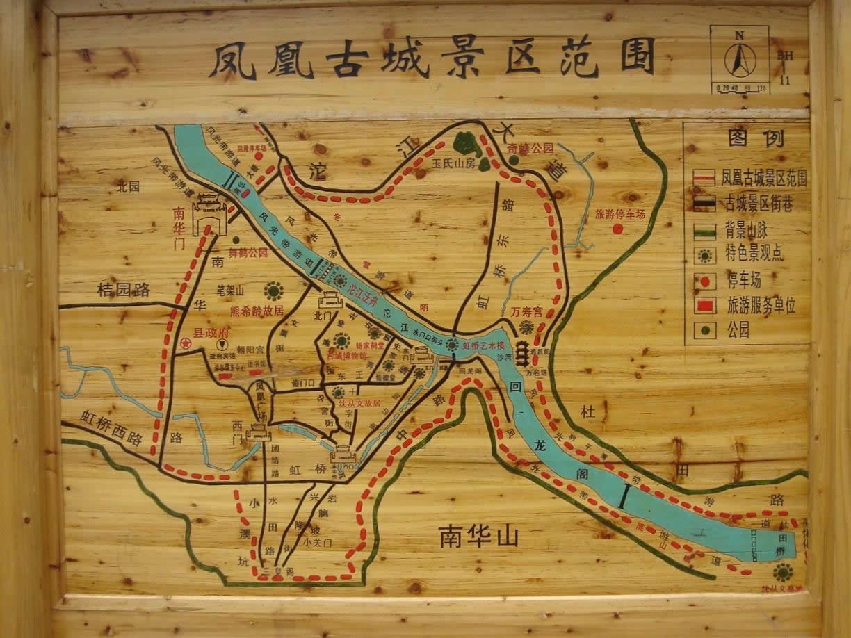 鳳凰古城,占地面積約10平方千米,城內(nèi)青石板街道,江邊木結(jié)構(gòu)吊腳樓,以及朝陽宮、古城博物館、熊希齡故居、天王廟、大成殿、楊家祠堂、沈從文故居、萬壽宮等建筑。