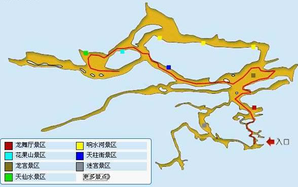 黃龍洞以立體的洞穴結(jié)構(gòu),龐大的洞穴空間,寬闊的廳堂及數(shù)以萬計(jì)的石筍,高大的洞穴瀑布,水陸兼?zhèn)涞挠斡[線等優(yōu)勢(shì)構(gòu)成了極具特色的游覽洞穴,洞內(nèi)有1庫、2河、3潭、4瀑、13大廳、98廊,以及幾十座山峰,上千個(gè)白玉池和近萬根石筍。由石灰質(zhì)溶液凝結(jié)而成的石鐘乳、石筍、石柱、石花、石幔、石枝、石管、石珍珠、石珊瑚等遍布其中,無所不奇,無奇不有,仿佛一座神奇的地下“魔宮”。黃龍洞現(xiàn)已開放有龍舞廳、響水河、天柱街、天仙瀑、龍宮等6大游覽區(qū),主要景觀有定海神針、萬年雪松、龍王寶座、火箭升空、花果山、天仙瀑布、海螺吹天、雙門迎賓、滄海桑田、黃土高坡等100多個(gè)。