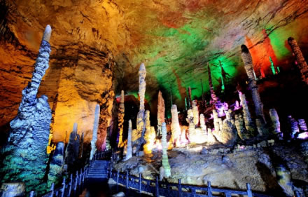 黃龍洞位于湖南省張家界市核心景區(qū)武陵源風(fēng)景名勝區(qū)內(nèi),是世界自然遺產(chǎn)、世界地質(zhì)公園武陵源的有機(jī)組成部分,屬典型的喀斯特巖溶地貌,以其龐大的立體結(jié)構(gòu)洞穴空間、豐富的溶洞景觀、水陸兼?zhèn)涞挠斡[觀光線路獨(dú)步天下,被列為國(guó)際旅游洞穴會(huì)員、全國(guó)35個(gè)王牌景點(diǎn)之一、中國(guó)首批AAAA級(jí)旅游景區(qū)、中國(guó)旅游首批知名品牌、中國(guó)馳名商標(biāo)、湖南省最佳旅游景區(qū)、張家界旅游精品線之一,享有“世界溶洞奇觀”、“世界溶洞全能冠軍”之美譽(yù),2005年被評(píng)選為“中國(guó)最美旅游溶洞”。