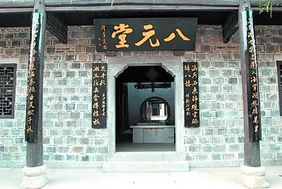 八元堂,又名寧鄉(xiāng)會(huì)館,座落在古鎮(zhèn)保健街上,建成于清咸豐十一年(1861年)。在晚清時(shí)期,靖港是溈水河入湘江的天然良港和商埠,昔日寧鄉(xiāng)的谷米、煤炭、油鹽等都是在此集散,來靖港從業(yè)的寧鄉(xiāng)人接近四千人,“西接湖垸,金稻銀棉憑集散;東依湘溈,風(fēng)帆云影任驅(qū)馳!北闶窃娙藢(duì)得天獨(dú)厚的靖港古鎮(zhèn)的頌贊,它在當(dāng)時(shí)是一個(gè)管理寧鄉(xiāng)船舶和谷米銷售的據(jù)點(diǎn),也是為來靖港的寧鄉(xiāng)老鄉(xiāng)下榻休息和聯(lián)絡(luò)鄉(xiāng)情等的服務(wù)機(jī)構(gòu)。