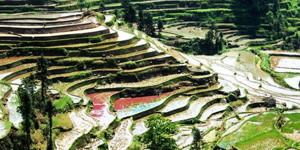 紫鵲界梯田位于新化縣西部山區(qū)水車鎮(zhèn)境內(nèi),她周邊的梯田達(dá)8萬余畝以上,其地勢之高,規(guī)模之大,形態(tài)之美,堪稱世界之最。紫鵲界生態(tài)環(huán)境優(yōu)美,梯田密集,形態(tài)原始,阡陌縱橫,線條流暢,山高水長,板屋交錯,充分展示出梯田的自然美、古樸美、形體美、文化美。尤其是隨著四季氣候的變化,使紫鵲界梯田更加婀娜多姿,如臨人間仙境。水奉公路盤旋于這些梯田之間達(dá)十余公里,梯田遍布于海拔500米至1000余米的十幾個山頭上,最大的不過1畝,最小的只能插幾十蔸禾,連綿起伏,輾轉(zhuǎn)盤旋,可謂是儀態(tài)萬方,令人贊嘆不已。據(jù)調(diào)查,紫鵲界梯田成型已有2000余年歷史,是苗、瑤、侗、漢等多民族