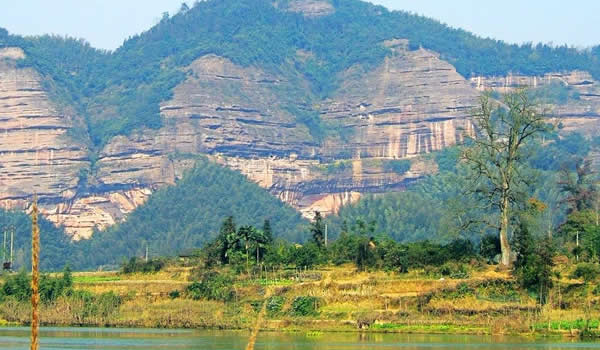 銅梁山位于湘潭縣石鼓鎮(zhèn)境內(nèi),山脈海拔700多米,地勢(shì)極為偏僻,正好處于湘潭縣與雙峰縣的交界之處。銅梁山名稱(chēng)由來(lái)還有個(gè)美麗的傳說(shuō)。在雙峰縣井字鎮(zhèn)與湘潭縣、湘鄉(xiāng)市交界處,有一座大山叫昌山。主峰靈應(yīng)峰海拔755.1米,是南岳72峰之一。在主峰與鷹尖石之間,橫臥著一條長(zhǎng)達(dá)2公里的一字形平脊嶺,當(dāng)?shù)厝私兴?ldquo;一字大脊”。相傳有一仙人挑著兩個(gè)大小不一的籮筐,掌燈時(shí)分就來(lái)到了大山腳下的花山村。熱情好客的花山人見(jiàn)了這位外來(lái)客人,格外歡喜,他們以美酒佳肴相陪,不知不覺(jué)已到雞鳴。仙人突然想起師父“雞鳴前一定要翻過(guò)大山”的教誨,趲告辭,挑起擔(dān)子飛也似的上山去。可是,送客的花山人一會(huì)兒便發(fā)現(xiàn),那人的擔(dān)子擱在了山頂,扁擔(dān)成了一條“一字脊”,兩個(gè)籮筐便成了一字脊兩端的“巒柱”,形似一個(gè)巨大的銅梁。因此,銅梁山這個(gè)美名便叫開(kāi)了。