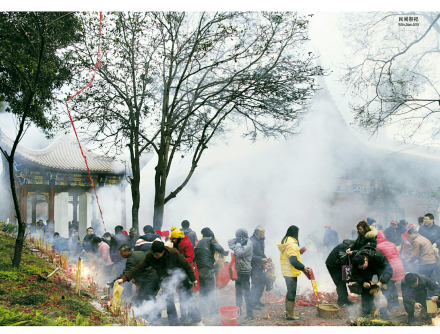炎帝陵民間祭祀以告祭為主。祭祀時間多選在每月的初一、十五以及各種節(jié)令、節(jié)慶。此外,每逢炎帝生辰日(農(nóng)歷四月二十六日),炎陵方圓幾百里的群眾都會匯集于炎帝陵,祭祀炎帝,祈福求平安。民間祭祀儀式有墓前牲祭、上香敬供、跪拜祈福、許愿求應(yīng)、還愿祭拜等等。每年正月,各地民眾爭相在炎帝陵宰殺牲畜,供上果品、美酒,向始祖行三拜九叩之禮,獻香燃炮,傳說這樣就能得到始祖庇佑,一年順順利利,所以每年正月炎帝陵香火尤為旺盛。民間祭祀對祭時、禮程亦十分講究,通常拜祭始祖前都會洗梳干凈,行跪拜叩首之拜之祭過炎帝后,將自己的心愿和所求寫于帛或紙是,用線系于小石子等重物一端,拋掛于炎帝陵內(nèi)的古樹上,祈求炎帝保佑愿望實現(xiàn)。