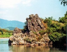 龍腦石又稱石龍鼓,位于陵前斜獺水水岸的炎帝陵桃源洞國家自然保護區(qū),巨石臨江,狀似龍首,江水奔注噴薄。傳說當(dāng)年炎帝靈柩水運至此,傾盆大雨,江水翻騰,一陣湍急旋渦,將炎帝靈柩沉入水底,卷入石穴。原來是水中的金龍為感炎帝救治之恩遂躍出水面,將炎帝請至龍宮作客。后來天上玉帝為懲罰金龍無理,用圣旨罰金龍化為石龍。龍頭化為龍腦石,龍爪化為龍爪石。至今龍腦石、龍爪石風(fēng)韻猶存,巨龍首兀立江面,栩栩如生,秀色可餐,風(fēng)景迷人,為炎陵自然勝景。