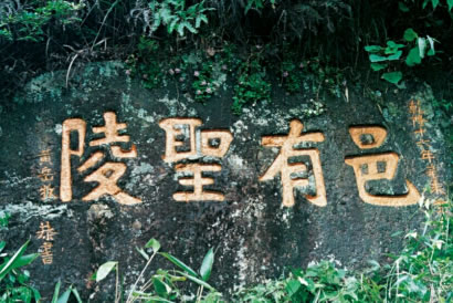 邑有圣陵位于炎陵故道,橋頭嶺下官壟口道旁,石壁上鐫刻乾隆十六年路碑“邑有圣陵”四個大字。炎帝去世后,人們把他安葬在鐘靈毓秀的“長沙茶鄉(xiāng)之尾”。幾經(jīng)周折,終于來到一個嶠陽嶺的地方。這里“四面嶄絕,鳥道羊腸”。站在嶠陽嶺上,舉目南望,只見群山環(huán)抱之中,有一塊平展開闊的原野。洣水三回九折,穿嶂過峽,奔騰而來。原野南端,層巒疊翠,虬木森森,煙云出沒,氣象萬千。認(rèn)為鹿原陂就是一塊富庶之地,至尊之地,文明發(fā)祥之地。辛勞一生的炎帝,應(yīng)該有這樣一塊安息之地。