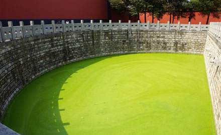 泮池位于萬仞宮墻北側,水池為半圓形,周圍有石欄桿,稱為“泮池”,是文廟標志性建筑之一。泮池下部原有兩組涵洞與宮墻外的運瀆相通,池水終年不竭。抗戰(zhàn)期間泮池曾被填平,1970年重新開挖,現(xiàn)與運瀆已不再相通。