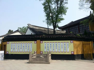 藏經(jīng)樓系原來(lái)收藏陳放經(jīng)書(shū)處,面闊3間,寬9.8米;進(jìn)深9.2米。藏經(jīng)樓樓屋頂有《西游記》中孫悟空、唐僧、豬八戒、沙悟凈的雕塑像。一樓內(nèi)墻壁上嵌有《金剛般若波羅蜜經(jīng)》的經(jīng)文(系禪宗)。還嵌有董其昌(1555一1636年,上海松江人,明代杰出的書(shū)畫(huà)家)等人的書(shū)法碑刻。鐘樓為二層,八角。樓下石碑為重修寒山寺時(shí)所立,正面碑文為程德全所撰,碑的背面刻有重修寒山寺時(shí)募捐者的名字和金錢(qián)額。傳說(shuō)張繼詩(shī)中的鐘就是懸于原來(lái)這里的鐘樓樓上。鐘樓建筑和這里的鐘都不是唐代的了,這口鐘是清代光緒三十二年(1906年)重鑄的,距今有100多年的歷史。月落烏啼霜滿天,江楓漁火對(duì)愁眠。姑蘇城外寒山寺,夜半鐘聲到客船!边@是唐代詩(shī)人張繼寫(xiě)的。傳說(shuō)詩(shī)人張繼去唐時(shí)首都長(zhǎng)安(今西安)赴考后,落第返回時(shí),途經(jīng)寒山寺,夜泊于楓橋附近的客船中,夜里難以成眠,聽(tīng)到寒山寺傳來(lái)的鐘聲,有感而作!稐鳂蛞共础吩(shī)在日本幾乎家喻戶(hù)曉。日本的小學(xué)生把這首詩(shī)作為課文來(lái)講授和背誦。