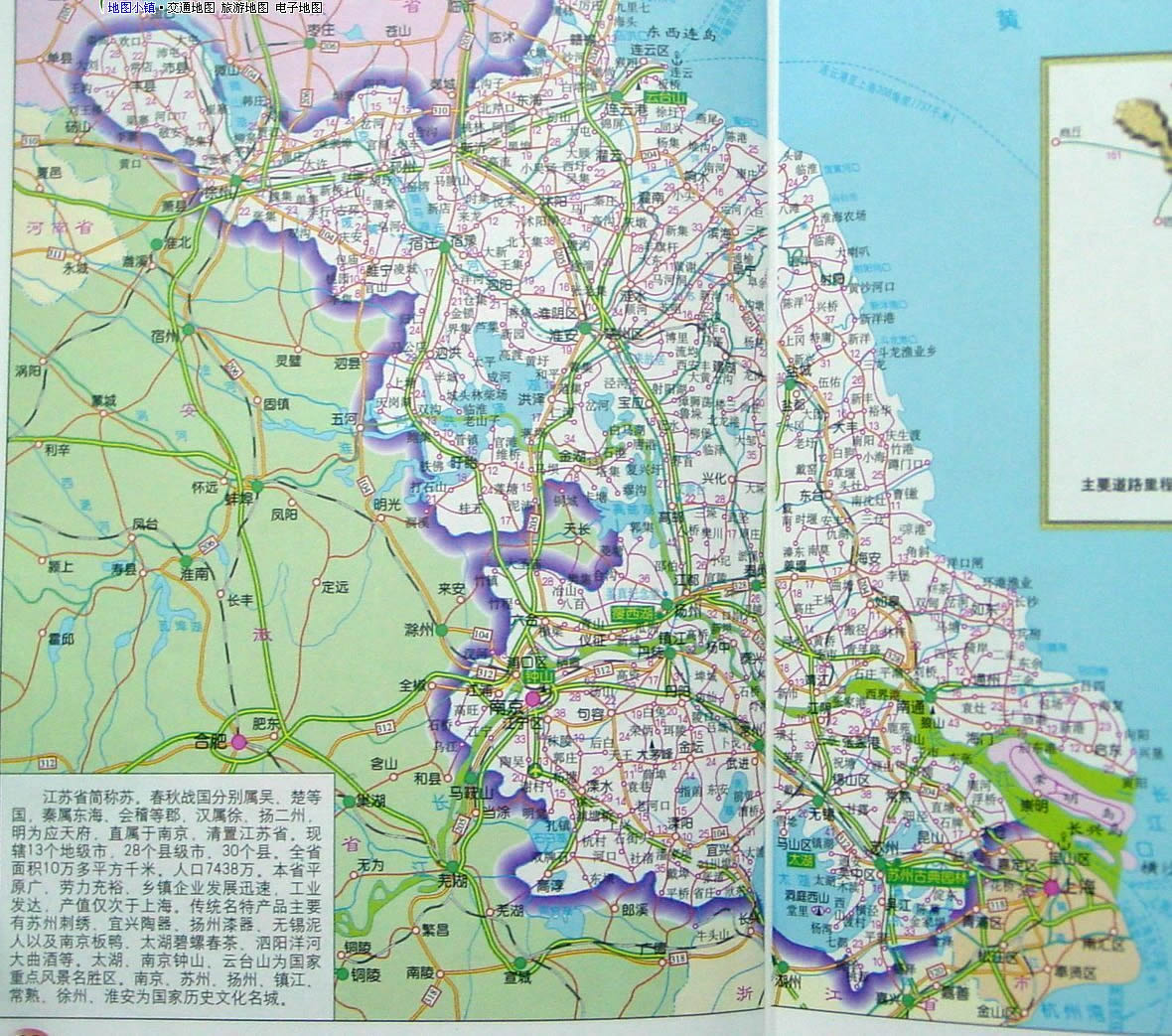 江蘇自然景觀壯麗,山水相接水天一色,山、水、洞、泉,旅游資源豐富,有橫臥東西的長(zhǎng)江,縱橫南北的大運(yùn)河,煙波浩淼的太湖、洪澤湖,清秀俊麗的瘦西湖、玄武湖、云龍湖,有雄峙江邊的狼山、金山、北固山,龍盤虎踞的紫金山,神奇美妙的花果山;有千奇百怪的善卷洞、張公洞、靈谷洞、慕蠡洞、西施洞;有名揚(yáng)天下的鎮(zhèn)江中冷泉、無(wú)錫惠山泉、湯山泉、江浦湯泉、浦口珍珠泉。