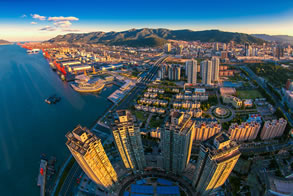 連云港港位于黃海之濱,中國沿海中部的海州灣西南岸,江蘇省的東北端,是中國沿海十大海港、全球百強集裝箱運輸港口之一,開通了50條遠近洋航線,可到達世界主要港口。港口北倚長6㎞的云臺山,為橫貫中國東西的鐵路大動脈——隴海、蘭新鐵路的東部終點港。與韓國、日本等國家主要港口相距在500海里的近洋扇面內,是江蘇最大海港、蘇北和中西部最經濟便捷的出?、新亞歐大陸橋東橋頭堡,以腹地內集裝箱運輸為主并承擔亞歐大陸間國際集裝箱水陸聯(lián)運的重要中轉港口,集商貿、倉儲、保稅、信息等服務于一體的綜合性大型沿海商港。