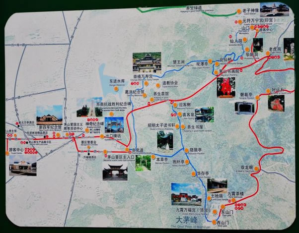 茅山,是環(huán)境優(yōu)美的風(fēng)景勝地。茅山自然風(fēng)光清新秀美,山區(qū)形勝獨(dú)特,枝繁葉茂,景色迷人,自古就有九峰、十九泉、二十六洞、二十八池之美景。這里的山不高卻秀雅,這里的水不深卻澄清。春游茅山,山林滴翠,草木芬芳。滿世界的嫩黃襯托這一處綠山,滿山間的野花給了這山林一路的狂想。薄霧輕如紗,夕陽宛如畫。夏游茅山,綠樹成蔭,蔥蘢一片。你可以在綠樹掩映下的九曲十八彎上揮汗如雨,欲與大山試比高;你也可以朝觀日出,暮賞彩云。雨后初晴,但見一絲薄云在深谷幽林間繚繞,此時山上的樹木閃爍著猶如水晶般晶瑩的綠。秋游茅山,天高云淡,色彩斑斕。林間飄落一地的楓葉定會引起你無限的遐想,看蘆葦花在風(fēng)中搖曳著輕盈,聽喜客泉水叮咚暢響,感受生命在不經(jīng)意的平淡中輪回。冬游茅山,銀裝素裹,霧松飄情。抑或暖陽普照,滿山林充斥著蓄勢待發(fā)的理想。萬簌俱靜中聆聽那道家仙樂,大有“花飛佛地三千里,人在瑤池十二層”之感。