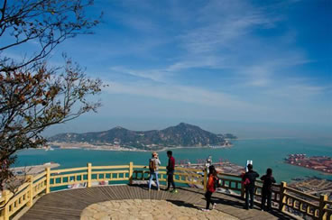 海天一覽觀景臺(tái),建于山崖頂上。依山面海,凌空壯觀,氣勢(shì)恢宏,與懸空棧道、懸索橋、云中漫步廊橋相連,總長(zhǎng)1180米,直通二桅尖山峰。游客在此,極目海州灣,一覽港島城,山海奇觀,盡收眼底,令人心曠神怡,流連忘返。有詩(shī)贊道:“山居有大觀,圖畫(huà)入眼簾。曠目千里遠(yuǎn),怡心數(shù)縷煙。島峰浮霧海,帆影接云天。海上長(zhǎng)虹落,銀鷗舞蹁躚”。