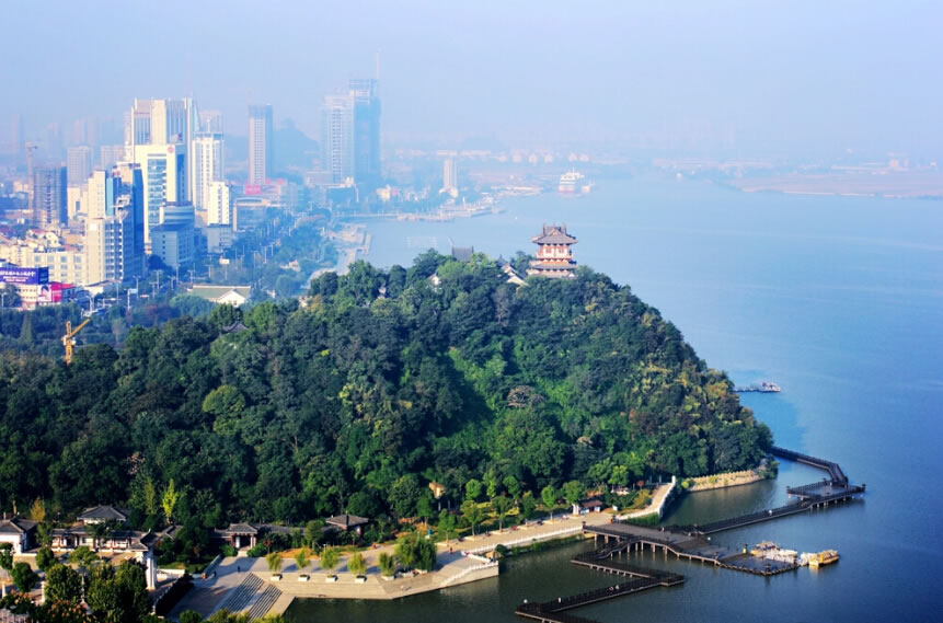 鎮(zhèn)江市區(qū)地貌南高北低,北部沿江分布著心灘、洲灘、邊灘以及沖積平原,海拔高度5米~10米。市區(qū)南部為低山殘丘,自西向東分布著五州山、十里長山、東山、黃山、觀音山、雞籠山、磨笄山等,東郊零星分布著汝山、橫山、京峴山、雩山等殘丘,除五州山、十里長山高度超過300米,其余山丘高度均在100米~200米之間。城區(qū)內(nèi)分布著金山、焦山、北固山、云臺山、象山等高度低于100米的孤丘,總體上形成一水橫陳、連崗三面的獨特地貌。