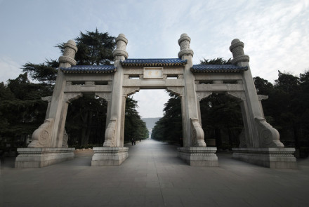 中山陵牌坊亦稱博愛坊,是墓道南端的入口處,謁陵憑吊者必經(jīng)于此。整座牌坊,都帶有濃厚的中國傳統(tǒng)和風格。牌坊高11米,寬17.3米,三間四柱沖天式。