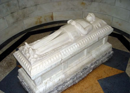 進門為圓形的浩氣長存墓室,直徑18米,高11米。墓室在海拔165米處,與起點平面距離700米,上下落差73米。頂部用彩色馬賽克鑲嵌成國民黨黨徽,地面用白色大理石鋪砌。中央是長形墓穴,上面是孫中山漢白玉臥像,此像系捷克雕刻家高琪按遺體形象雕刻的。下面安葬著孫中山的遺體。用一具美國制造的銅棺盛殮。墓穴直徑4米深5米,外用鋼筋混凝土密封。瞻仰者可在圓形墓室內(nèi)圍繞漢白玉欄桿俯視靈柩上的臥像。