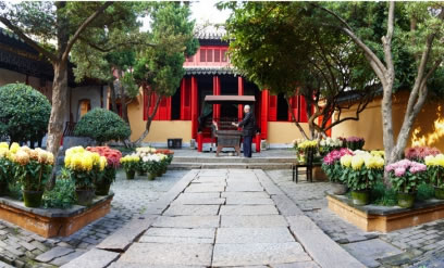 南湖園全福寺分為三個(gè)部門(mén),東西兩個(gè)為花園,分別是為了紀(jì)念唐朝著名詩(shī)人劉禹錫、陸龜蒙和西晉文學(xué)家張季鷹而建,中間即是全福講寺。