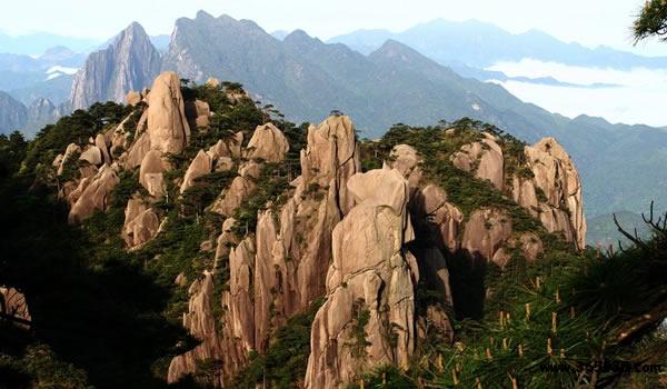 三清山:坐落于江西省東部門戶上饒市玉山縣與上饒德興市交接處。因玉京、玉虛、玉華“三峰峻拔,如三清列坐其巔”而得名。風景區(qū)總面積229平方公里,最高峰玉京峰海拔1819.9米,為懷玉山脈的主峰。懷玉山因“天帝遺玉、山神藏焉”,風光無限,別具精神而得名。三清山集天地之秀,納百川之靈,是華夏大地一朵風景奇葩。她兼具“泰山之雄偉、黃山之奇秀、華山之險峻、衡山之煙云、青城之清幽”,被國際風景名家譽之為:“世界精品、人類瑰寶、精神玉境”。她以梯云嶺、南清園、萬壽園、西海岸、玉京峰、陽光海岸、三清宮、玉零觀等十大景區(qū)引人入勝。山的東南麓水連三清湖,山光水色,溶洞奇石,美不勝收。1988年8月列為國家重點風景名勝區(qū),2008年7月列為世界自然遺產(chǎn)地,F(xiàn)為國家5A級風景旅游區(qū)、國家自然遺產(chǎn)、國家地質(zhì)公園、全國愛國主義教育示范基地和全國文明風景旅游區(qū)示范點。