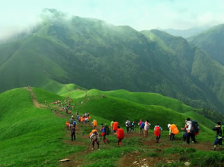 武功山的高山草甸海拔之高,面積之廣在世界同緯度名山中都是絕無(wú)僅有的。10萬(wàn)畝草甸綿綿于海拔1600多米的高山之巔,穿云入霧,春夏綠油油,秋季金燦燦,冬天白皚皚,游人無(wú)需遠(yuǎn)赴邊陲,便可領(lǐng)略北國(guó)風(fēng)光,真可謂“天上草原、人間仙境、北國(guó)風(fēng)光、綠色家園”,被專(zhuān)家稱(chēng)為“奇山伴草甸,天下一絕”。