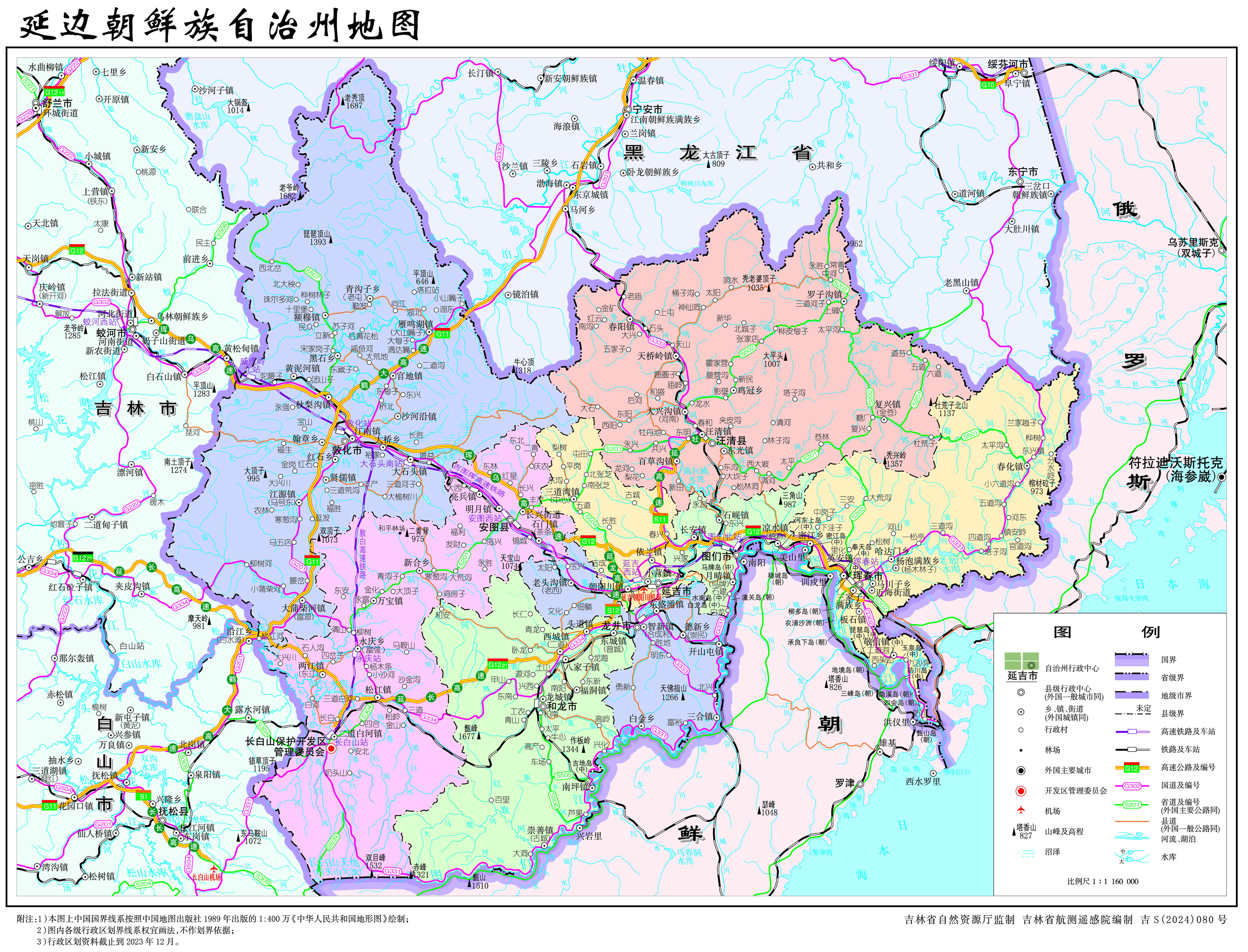 延邊朝鮮族自治州位于吉林省東部,地處中、朝、俄三國交界,面臨日本海,東與俄羅斯濱海邊疆區(qū)接壤;南隔圖們江與朝鮮咸鏡北道、兩江道相望;西臨吉林市、白山市;北接黑龍江省牡丹江市。州內(nèi)有5個邊境縣(市),642個邊境村屯;邊境線總長768.5千米,中朝邊境線522.5千米,中俄邊境線246千米。全州土地總面積為4.33萬平方千米,約占吉林省總面積的四分之一。