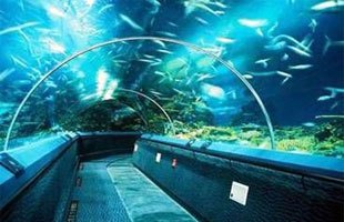 游人通過(guò)長(zhǎng)廊猶如深入海底,四面都是海水,海底世界中神奇迷離的海底景觀將圍繞在您的上方和四周。300多種,1萬(wàn)多尾海洋魚(yú)類(lèi)以及身穿彩服像美人魚(yú)一樣的潛水員在您的頭頂和身旁游來(lái)游去。還有迷人的珊瑚叢、形態(tài)各異的礁石、飄來(lái)飄去的海草等海景,仿佛觸手可及。