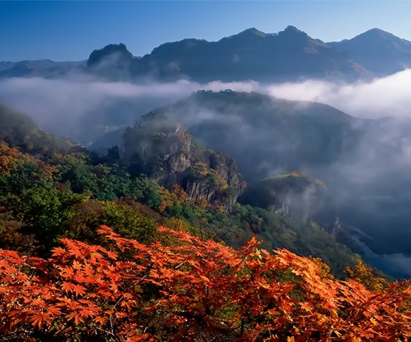 關(guān)門(mén)山位于遼寧省本溪縣南部,自古就有“東北黃山”、“東北桂林”之美譽(yù)。因雙峰對(duì)峙,一闊一窄,一大一小,其狀如門(mén),故稱(chēng)關(guān)門(mén)山。