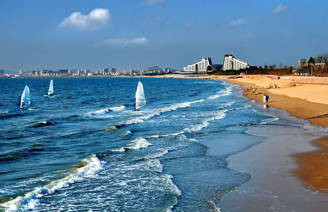 白沙灣黃金海岸(國(guó)家AAAA級(jí)風(fēng)景旅游區(qū))地處蓋州市歸州辦事處、九壟地辦事處西部,全長(zhǎng)14.7公里,距蓋州市區(qū)46公里,距高速公路(熊岳站出口)8公里,濱海公路貫穿園區(qū)。面臨渤海,以海域風(fēng)光為主,海岸蜿蜒,沙灘細(xì)軟,形如新月,景色壯麗。白沙灣是一個(gè)在綠樹掩映之下的海濱浴場(chǎng),人稱“東北第一灘”。
