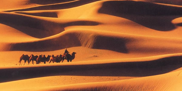 恩格貝,蒙古語,意為平安、吉祥。地處庫布齊沙漠中段。歷史上曾綠草如茵,牲畜成群,召廟香火繚繞,是蒙古人民世代生息的地方。人類掠奪性的開墾、過牧,加上戰(zhàn)爭因素,作用于此地脆弱的生態(tài)環(huán)境,這里逐漸地被夷為沙海。土地資源喪失,人民被迫遷徙他鄉(xiāng)。