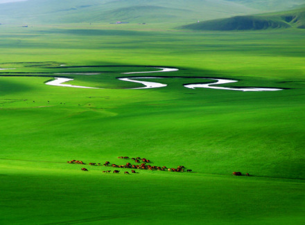 呼倫貝爾市有天然草場8萬平方公里,天然林地12萬平方公里, 呼倫貝爾地處生態(tài)屏障地帶,擁有3000多條河流(其中著名的額爾古納河、克魯倫河、雅魯河等),500多個(gè)湖泊(其中著名的呼倫湖、貝爾湖),3000多種植物(如樟子松),400多種野生動(dòng)物(如狍子、飛龍、黑熊等)。大興安嶺由北向南縱貫其中,成為天然的南北界線。世界聞名的呼倫貝爾大草原廣袤無垠,有“綠色凈土”“北國碧玉”之美譽(yù)。