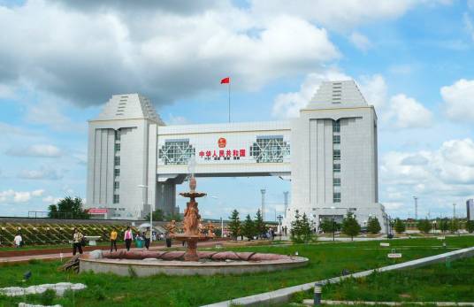 呼倫貝爾滿洲里國門景區(qū),位于內(nèi)蒙古呼倫貝爾滿洲里市,現(xiàn)為第五代國門,建于2008年,總寬105米,高43.7米,厚度46.6米,共八層,是國家5A級(jí)旅游景區(qū)中俄邊境旅游區(qū)的重要組成部分。