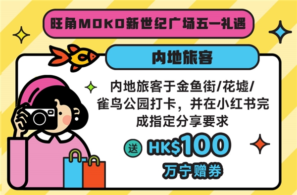 針對游客需求的變化,香港政府推出相關(guān)扶持政策,以支持區(qū)域特色打卡發(fā)展。以香港最著名的旅游區(qū)、購物區(qū)和美食區(qū)旺角為例,為了迎接內(nèi)地游客,香港政府在金魚街、花墟、雀仔公園設(shè)置不同打卡裝置。當(dāng)?shù)氐纳虉鲆餐ㄟ^各種舉措歡迎內(nèi)地游客。旺角地標(biāo)MOKO新世紀(jì)廣場面向內(nèi)地游客推出專享優(yōu)惠“日夜打卡繽紛禮”,于以上景點(diǎn)打卡分享到小紅書社交媒體及完成指定要求,可免費(fèi)領(lǐng)取總值100港幣的萬寧贈券一份,一鍵PO出雙倍快樂。