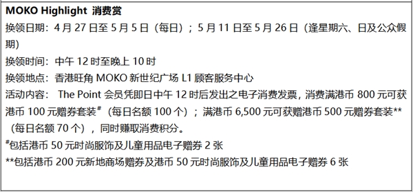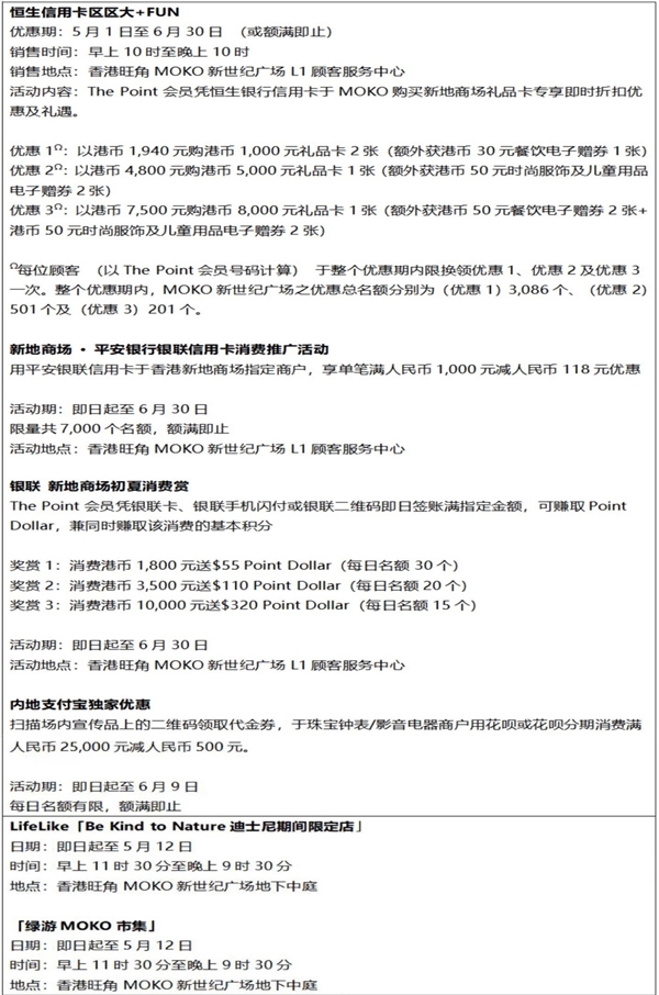 有關(guān)香港旺角MOKO新世紀(jì)廣場五一推廣活動詳情