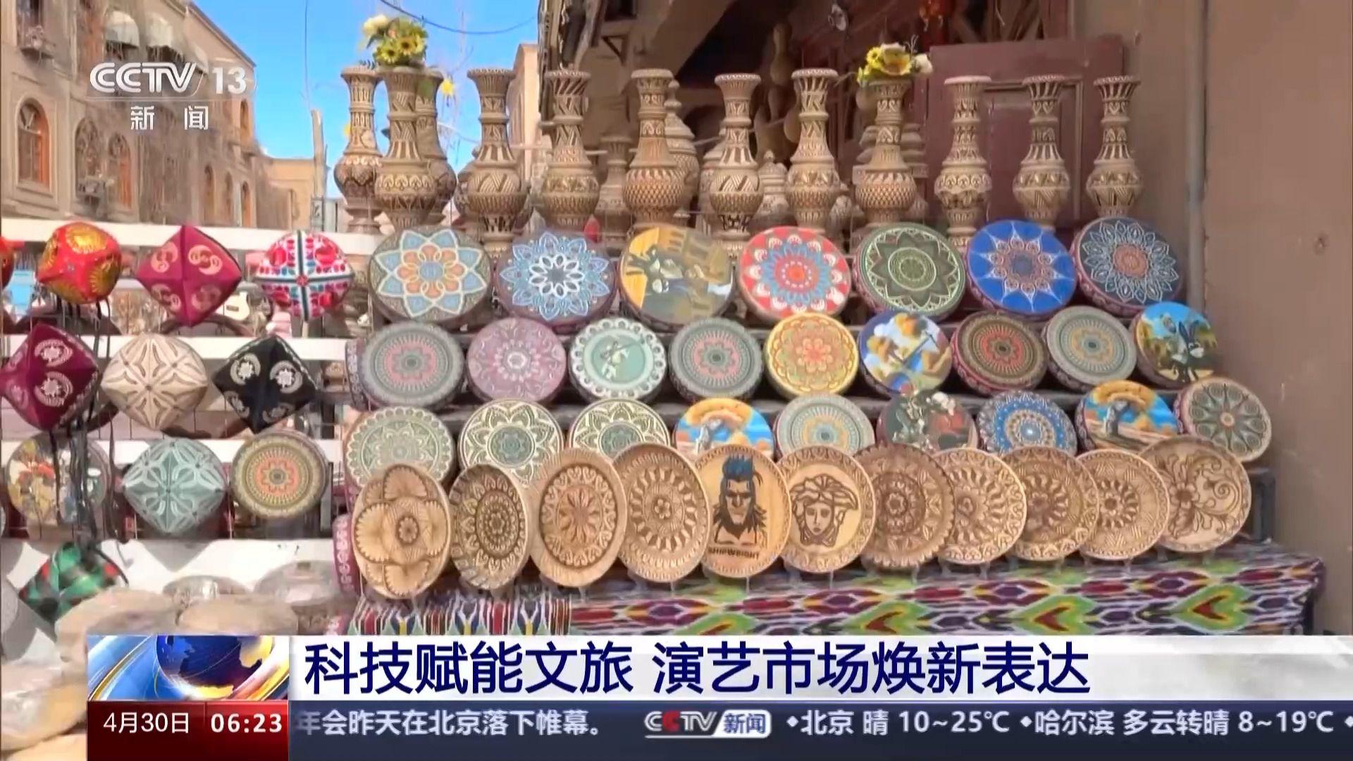 同樣在春晚中成為“爆款”的新疆喀什分會(huì)場(chǎng),每晚十點(diǎn)準(zhǔn)時(shí)上演豐富多彩的歌舞節(jié)目,以虛實(shí)結(jié)合、現(xiàn)代化燈光舞美,吸引了眾多游客駐足觀賞。