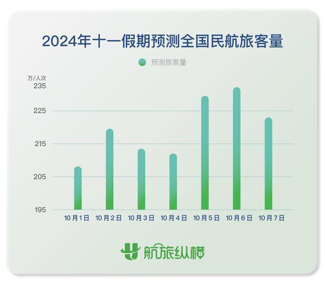 今年國慶旺季民航繼續(xù)呈“量升價跌”趨勢。據(jù)民航出行服務(wù)平臺“航旅縱橫”近日發(fā)布的報(bào)告顯示,2024年國慶假期期間(10月1日至10月7日)全國民航旅客量預(yù)計(jì)將超1565萬人次,日均旅客運(yùn)輸量達(dá)223萬人次,同比2023年國慶假期增長7%,較2019年同期增長19%。