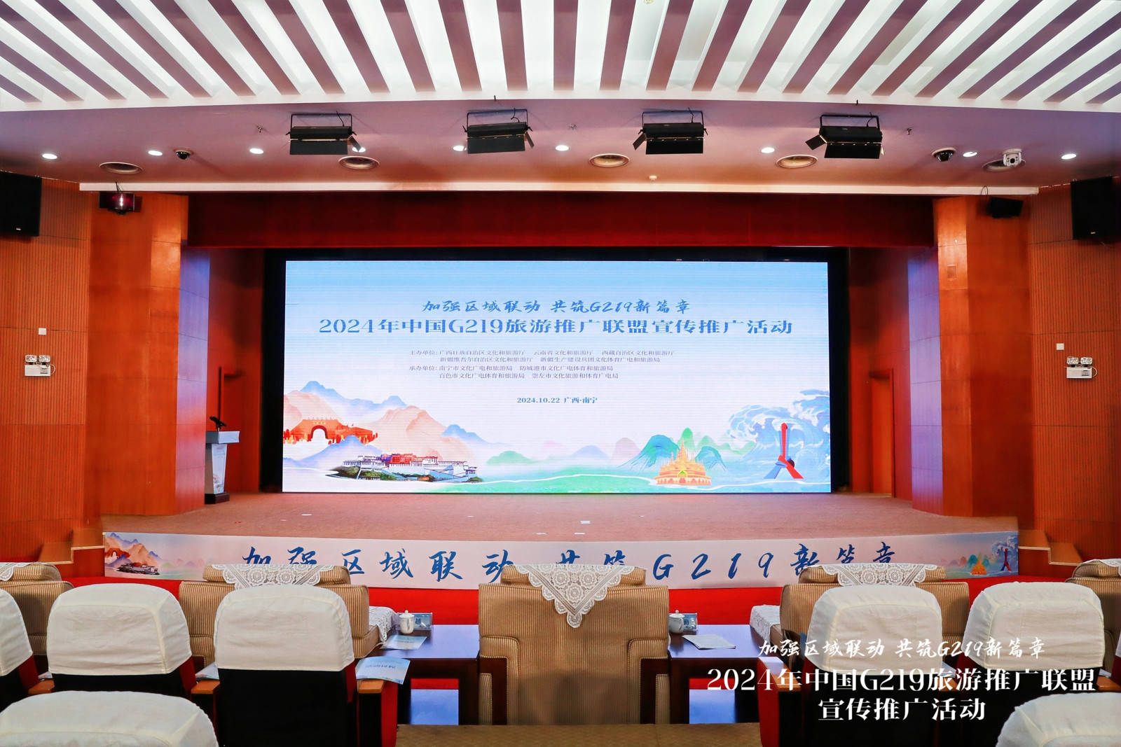 2024年10月21日—24日,中國G219旅游推廣聯(lián)盟宣傳推廣活動(以下簡稱“聯(lián)盟推廣活動”)在廣西南寧市舉辦,本次活動由廣西壯族自治區(qū)文化和旅游廳、云南省文化和旅游廳、西藏自治區(qū)文化和旅游廳、新疆維吾爾自治區(qū)文化和旅游廳、新疆生產(chǎn)建設(shè)兵團文化體育廣電和旅游局聯(lián)合主辦。廣西壯族自治區(qū)文化和旅游廳黨組成員、副廳長班華勤、西藏自治區(qū)文化和旅游廳黨組成員、副廳長姬越、云南省文化和旅游廳二級巡視員劉曉桐、新疆維吾爾自治區(qū)文化和旅游廳資源開發(fā)處段玉明處長,新疆生產(chǎn)建設(shè)兵團文化體育廣電和旅游局旅游處處長楊紅艷出席活動。來自廣西、云南、西藏、新疆等省區(qū)和新疆生產(chǎn)建設(shè)兵團的文旅相關(guān)部門、行業(yè)協(xié)會、文旅企業(yè)代表及旅游達(dá)人、媒體記者等200多人參加活動。