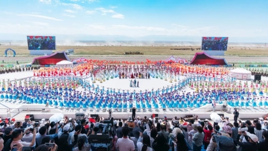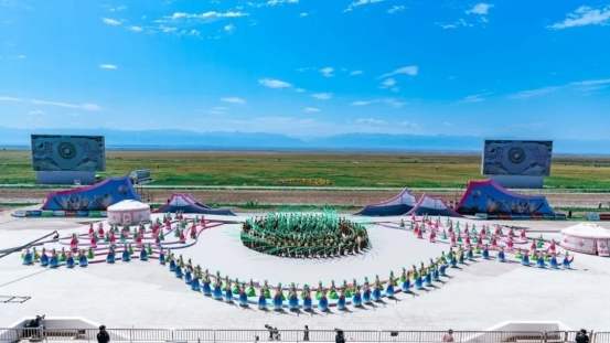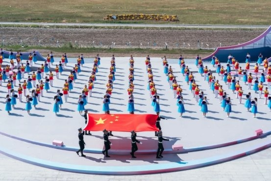 開幕式尾聲中,全體演員深情合唱《歌唱祖國》。同時,氣勢恢宏的“萬馬奔騰”表演在喀爾坎特草原激情上演,將整場演出再度推向高潮。