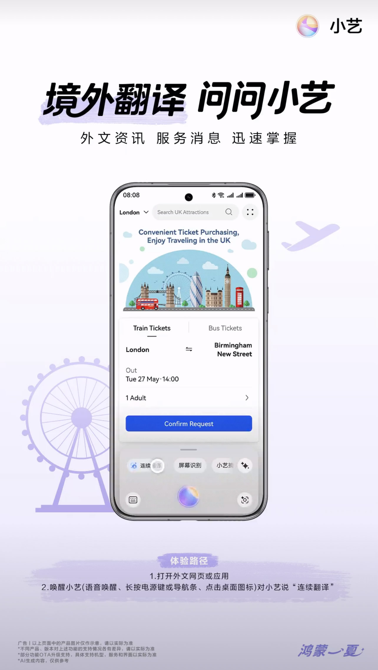 境外游時(shí),難免遇到瀏覽當(dāng)?shù)鼐W(wǎng)站訂票、打車時(shí)卻發(fā)現(xiàn)根本看不懂的麻煩。升級(jí)到鴻蒙 5.1的用戶這時(shí)就可以用小藝“連續(xù)翻譯”功能解決。長(zhǎng)按小藝導(dǎo)航條,點(diǎn)擊“連續(xù)翻譯”服務(wù)即可體驗(yàn),一次開(kāi)啟就能實(shí)現(xiàn)屏內(nèi)邊瀏覽邊翻譯的系統(tǒng)級(jí)連續(xù)翻譯體驗(yàn),支持截屏、文檔、瀏覽器等全場(chǎng)景的連續(xù)性翻譯。